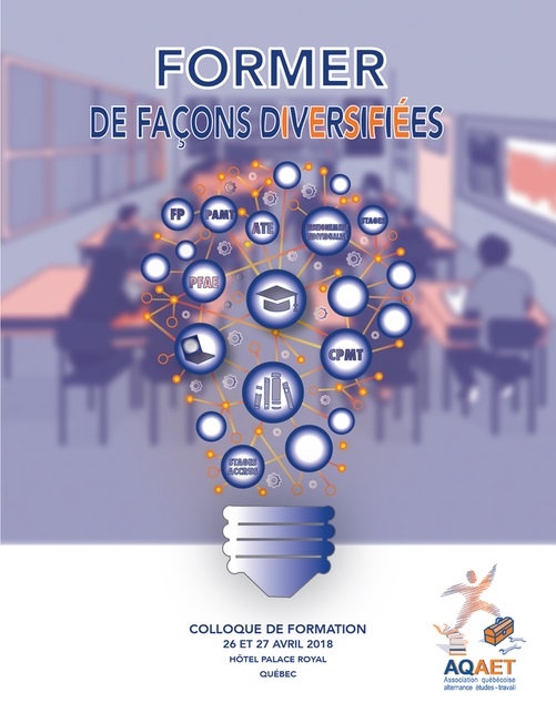 Le colloque de formation de l’Association québécoise alternance études-travail (AQAET) se tiendra les 26 et 27 avril 2018 au Palace Royal à Québec sous le thème Former de façons diversifiées.