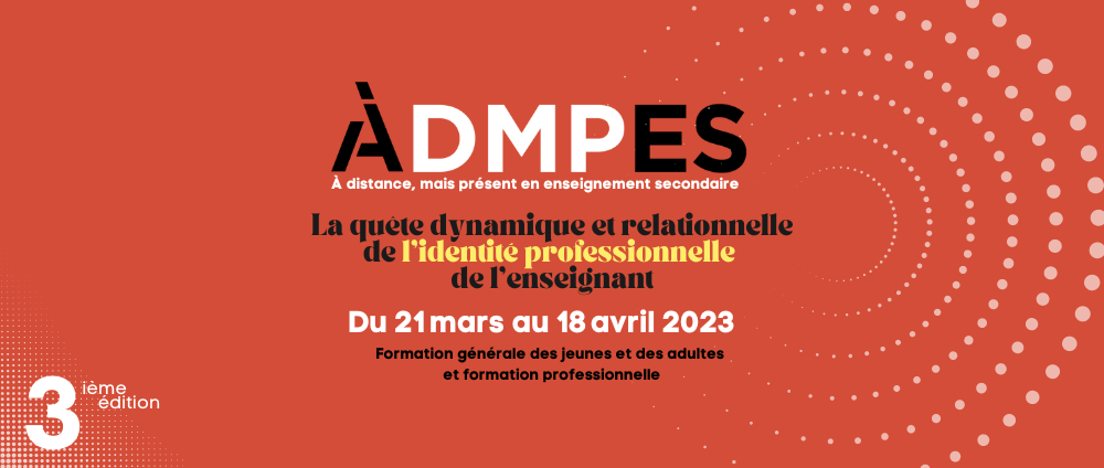 L’évènement À distance mais présent en enseignement secondaire (ÀDMPES) est organisé à l’intention du personnel de l’enseignement secondaire. Il a pour but d’échanger sur la pratique enseignante et d’explorer des idées nouvelles dans un esprit de collaboration afin de maintenir et de développer des conditions d’enseignement qui soutiennent le plaisir d’apprendre en formation générale des jeunes et des adultes et en formation professionnelle.