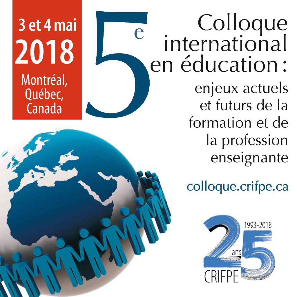 Le colloque de formation du Centre de recherche interuniversitaire sur la formation et la profession enseignante (CRIFPE) se tiendra les 3 et 4 mai 2018 au Centre Sheraton de Montréal sous le thème Enjeux actuels et futurs de la formation et de la profession enseignante! Le centre de recherche fêtera également ses 25 ans au mois de mai.