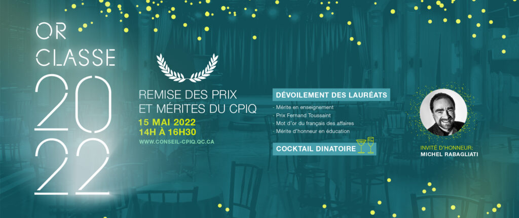 La remise des Prix et Mérites du CPIQ (Or classe) 2022 s’est déroulée le 15 mai au Lion d’Or à Montréal, en présence de plusieurs invités. Nos Félicitations aux lauréat.e.s!