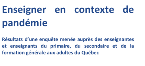 Le Centre de recherche interuniversitaire sur la formation et la profession enseignante (CRIFPE : https://crifpe.ca/) a réalisé en mai et juin dernier à travers tout le Québec ce qui est sans doute une des plus importantes enquêtes auprès de l’ensemble du personnel enseignant des secteurs public et privé, et de tous les ordres et secteurs d’enseignement : préscolaire, primaire, secondaire, enseignement professionnel et éducation des adultes.